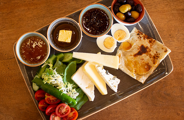 Peynir Çeşitleri , Zeytin Çeşitleri , Reçel Çeşitleri, Salam-Sosis, Tere Yağı, Bal, Kavurma, Domates,Salatalık,Patates Cips, Sigara Böregi , Gözleme, Menemen, Omlet